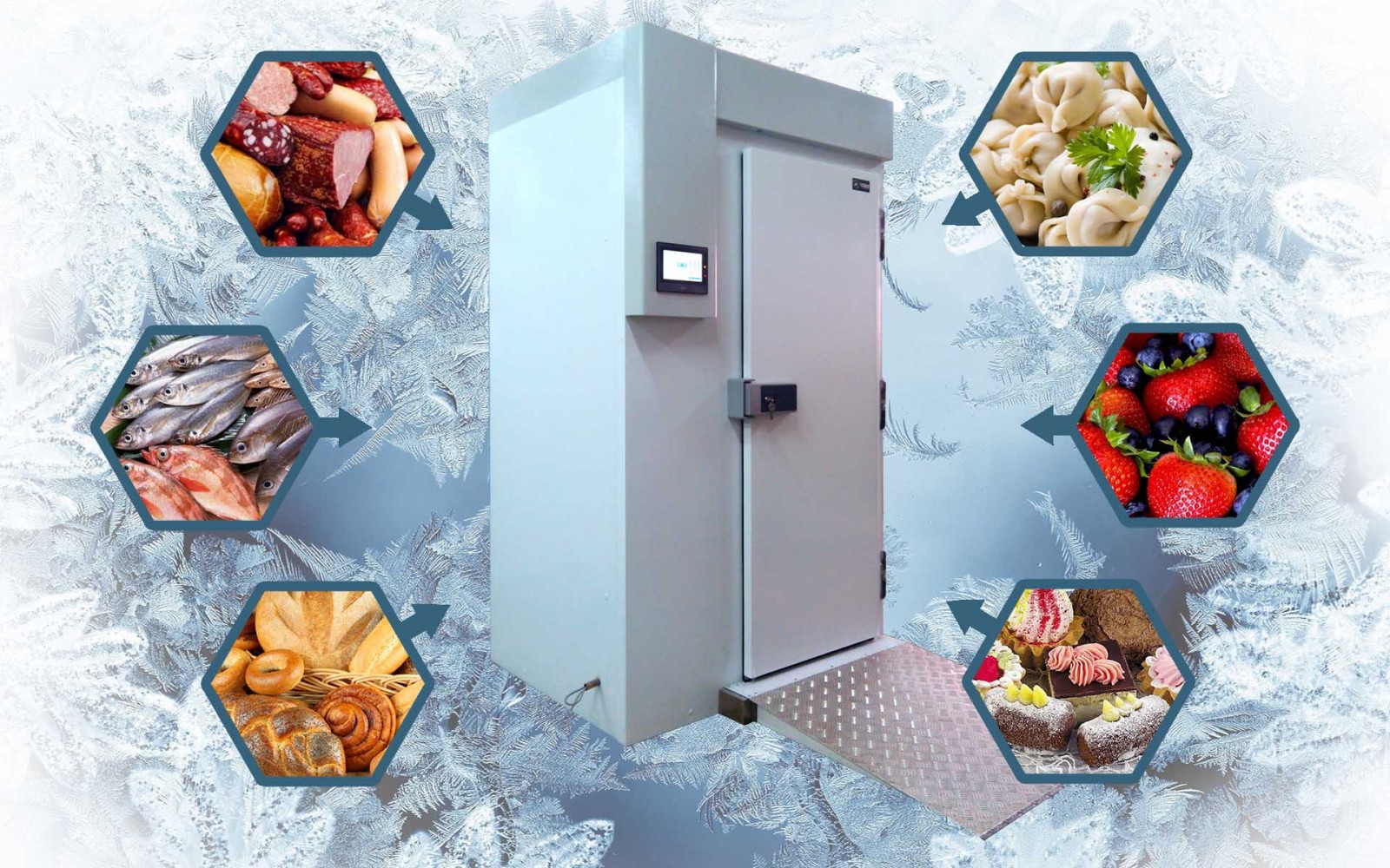 В такой камере продукт, обдуваемый потоком холодного воздуха, полностью замораживается за 1,5-2 часа. Этот тип заморозки, называемый шоковым, на сегодняшний день является единственной технологией консервации, позволяющей сохранить всю питательную ценность, все первоначальные вкусовые характеристики овощей, фруктов, ягод, а также рыбных и мясных полуфабрикатов. Продукт может быть размещен в камере для шоковой заморозки в тележках, на стеллажах или подвесах.